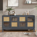 Retro Industrial Gray 4 Door Sideboard With Large Storage, Rattan And Glass Doors - Antique Dark Gray / Rattan59.84"W x 15.91"D x 30.51"H - 67.54 lb