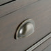 - Features 2 large frame panel drawers with Antique Bronze drawer pulls and metal drawer glides