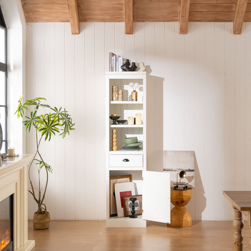 Angled shape perfect for any corner space Unique silhouette lends a contemporary appeal 1 adjustable shelf for customizable storage Made with warp...