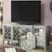 Elegant Design: The Kacia Console Cabinet features a sophisticated appearance with ornamental detail on the doors, adding a touch of elegance to any room.