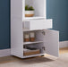 Dimensions and Material: Crafted from particle board, the cabinet measures 18.50 inches in length, 15.50 inches in width, and 73.50 inches in height, with a total weight of 75.70 lbs.