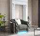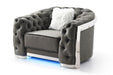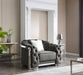 • Modern Design with Chrome Trim: Features a unique modern living room chair with chrome trim on the front and sides, creating a sleek and contemporary look.