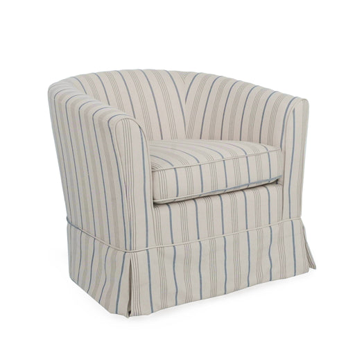 CONTEMPORARY DESIGN: Showcasing nailhead trims and a classic tub shape, this swivel chair embodies a truly contemporary style. BARREL CLUB CHAIR: ...