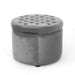Elegant Round Ottoman Footstool With Velvet Upholstery And Studded Rim - Gray21.5"W x 21.5"D x 15.75"H - 12.35 lb