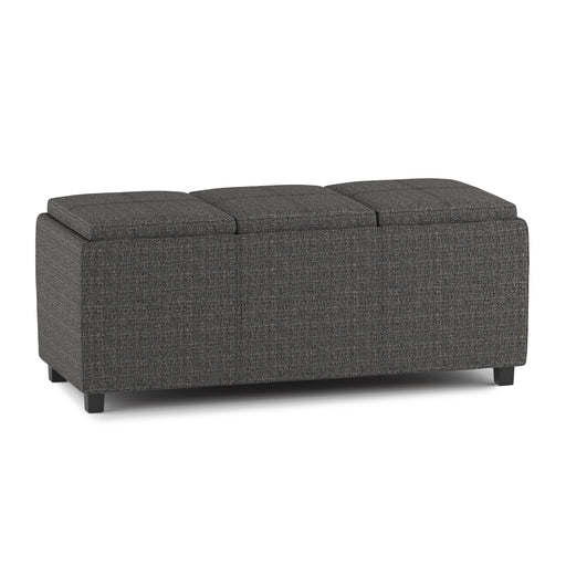 Hand constructed using solid wood, engineered woods and high density foam Upholstered Features large interior storage space with four flip over se...