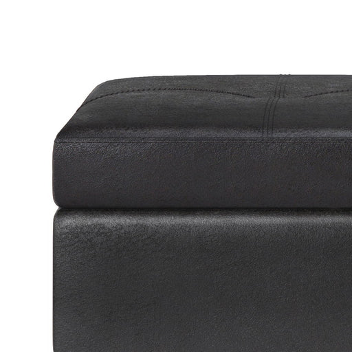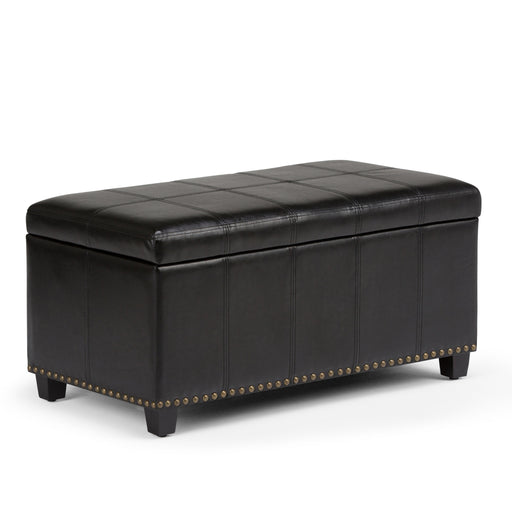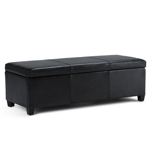 Hand constructed using solid wood, engineered woods and high density foam Upholstered in a durable Vegan Faux Leather Features large interior stor...