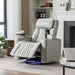 270° Power Swivel Recliner Home Theater Chair With Hidden Arm Storage, LED Light, Cup Holder, And Tray Table