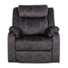 Soft, Suede-Like Material: The recliner is crafted with a fabric that mimics the feel of suede, providing a plush yet supportive seating experience. Its firm but cushy seat ensures comfort for extended periods of sitting.