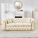 Velvet Button Tufted Sofa Couch With 2 Pillows 3 Seater Luxury Chesterfield Sofa Set With Stainless Steel Accents For Living Room - Beige90.6"W x 35.5"D x 31.5"H - 140.0 lb