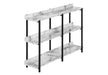 3-Tier Design: This console table features a long, rectangular tabletop and two additional storage shelves, all designed with finish to provide a sleek and symmetrical display piece.