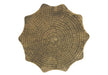 • Design and Finish: This drum table features a stylish scalloped design with a hammered texture, finished in an antique metal. It adds an eye-catching boho glamour to any living room or bedroom setting.