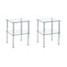 Modern 2 Piece Side Table With Storage Shelf, Tempered Glass, Space Saving Design - Clear