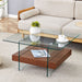 Modern 2 Tier Square Coffee Table With Clear Glass And Wood Texture - Natural Wood / Transparent31.4"W x 31.4"D x 16.6"H - 69.23 lb