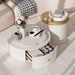 Modern Round Coffee Table (Set of 2), 360 Degree Rotatable Flower Shaped Top With 2 Drawers, Top Circle Side Table End Table With Glass For Living Room - Off White47.0 lb