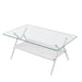 Rectangle Coffee Table With Tempered Glass Top And Shelf, Modern Table For Living Room