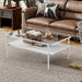 Rectangle Coffee Table With Tempered Glass Top And White Legs, Modern Table For Living Room