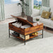 Rustic Flip Top Coffee Table With Hidden Storage - Black / Brown