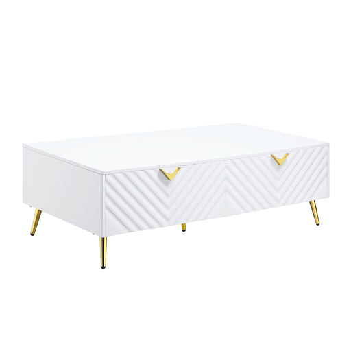 Design & Features: The Bertie White Finish Accent Table boasts a rectangular shape with a wooden tapered leg design. It includes an open ...