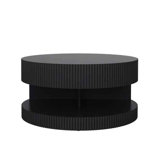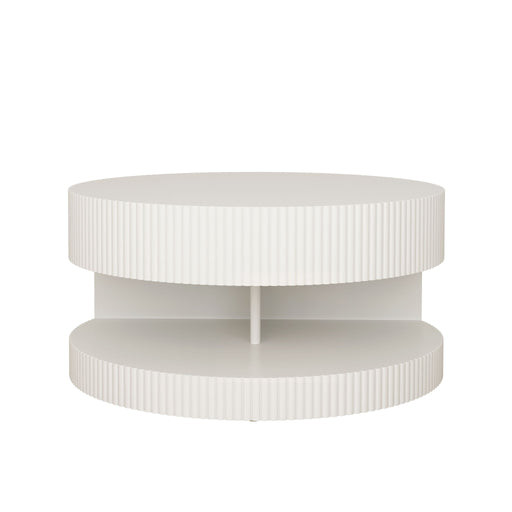 Slatted Round Oak-ish Coffee Table - A captivating fusion of modern aesthetics and natural craftsmanship, this round coffee table is expertly hand...