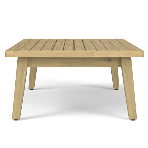 Handcrafted with top quality solid acacia wood Slatted Top is hand-finished in Light Teak Features thick slatted rectangle table top with rounded ...