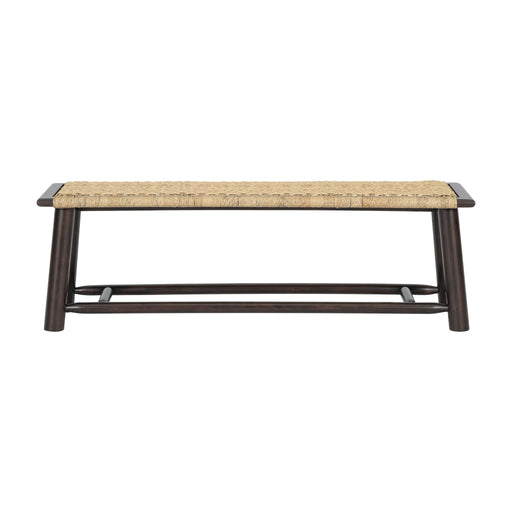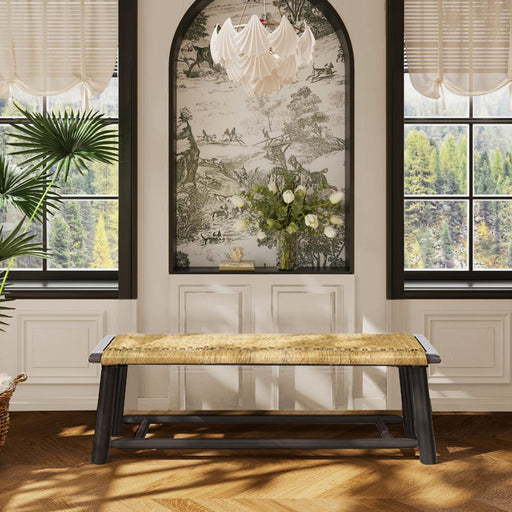 Nature-Inspired Design: Handcrafted bench featuring organic acacia wood grains and rattan accents, blending rustic charm with contemporary lines f...