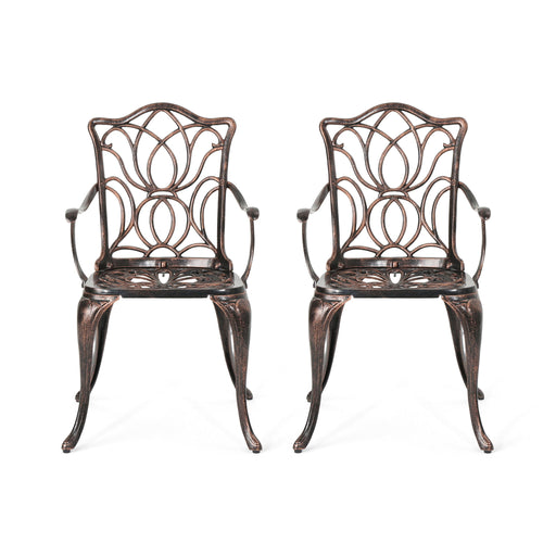 Outdoor Dining Chair With Floral Design And Curved Saber Legs (Set of 2) - Copper
