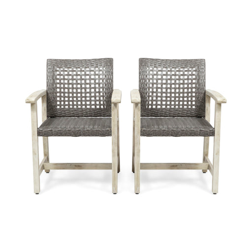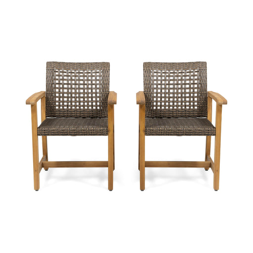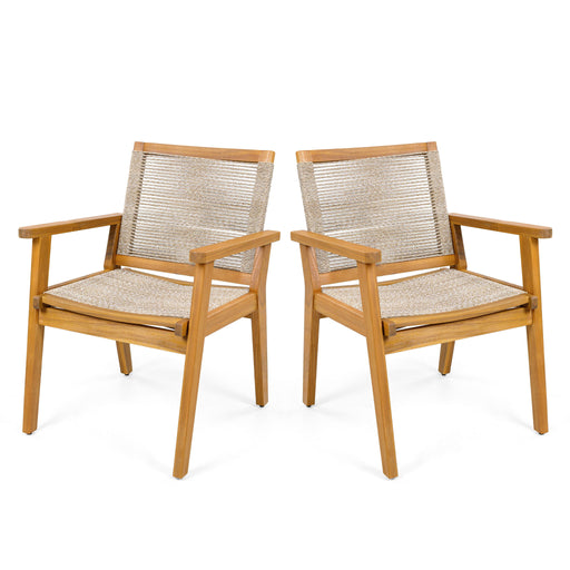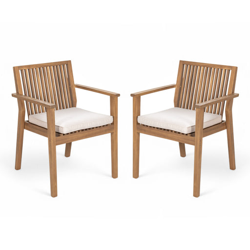 Outdoor Acacia Wood Patio Dining Armchair (Set of 2)