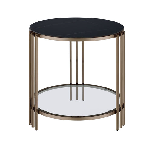 Modern Design: The Adelae End Table features a sleek faux marble top combined with a chrome-finished metal "X" base, making it an ideal addit...