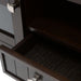 - Features two (2) bottom drawers, two (2) side cabinets with tempered glass doors with one (1) adjustable shelf each