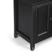 - Features a large centrally located open area with two drawers as well as two (2) framed doors with enclosed spaces; the two (2) large side storage cabinets open to one adjustable shelf each.