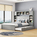 Flexible Storage Space: Two seamless-glide drawers and a concealed trundle bed optimize under-bed storage capacity, ideal for organizing linens or seasonal clothing. The multifunctional headboard integrates 10 modular cubbies and 4 closed cabinets, offering flexible display and concealed storage options. Customize this space to showcase decor or discreetly store essentials, enhancing both utility and aesthetic cohesion.