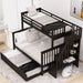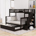 Twin Over Full Bunk Bed With Twin Size Trundle, Storage And Guard Rail For Bedroom - Espresso93.7"W x 58.1"D x 62.2"H - 226.72 lb