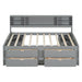 Full Size Daybed With 2 Bedside Cabinets, Upper Shelves And 4 Drawers - Gray77.8"W x 63.1"D x 43.3"H - 189.6 lb