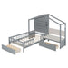 Twin Size House Bed With Upholstered Sofa, Wireless Charging Station, Shelves And 2 Drawers - Gray78.9"W x 83.8"D x 66.8"H - 146.73 lb