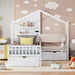 Twin Size House Bed With Upholstered Sofa, Wireless Charging Station, Shelves And 2 Drawers - White78.9"W x 83.8"D x 66.8"H - 146.73 lb