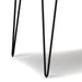 - Table base is made of powder-coated iron metal in Black with trendy hairpin-style legs that bring an open, airy feel to a dining space.