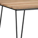 - Table base is made of powder-coated iron metal in Black with trendy hairpin-style legs that bring an open, airy feel to a dining space.