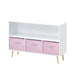 Kids Bookcase With Collapsible Fabric Drawers, Children's Book Display, Toy Storage Cabinet Organizer - White / Pink