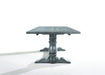 • Striking Trestle Base: The trestle base includes double turned empire pedestals, providing stability and a visually striking element that complements the weathered finish, adding to the table's overall aesthetic.