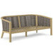 - The curved chair frame, arms and legs are constructed from solid acacia wood,handfinished in light teak