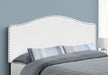Elegant Design: This upholstered headboard features an arched top in a white leather-look fabric, complemented by a silver-finish nailhead trim for a sophisticated, modern appearance.